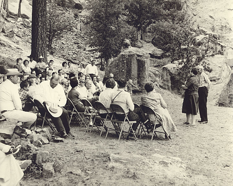 | Tietjen Reunion at Lavantena New Mexico, 1963 Amos is center in dark shirt. To the right of Amos is Maud Tietjen. Fat is far left holding hat. Courtesy of Thelma Jo Elkins |