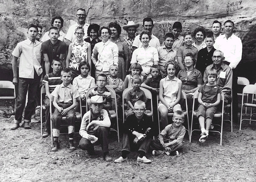 | Tietjen Reunion at Lavantena New Mexico, 1963 Amos and Lorena are third row right. Courtesy of Judy & Earl Hassell |