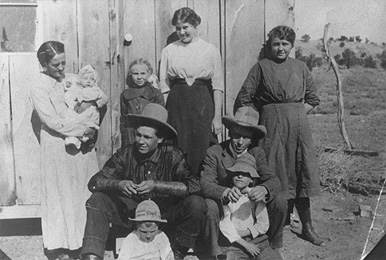 1915 L-R, back: Maud, Gladdus (baby), Ina, Hazel Lewis, Josephine Men: Al Tietjen and Chalk Lewis; Boys: Fat & Embert (or Jeff) Courtesy of Gary Tietjen |
